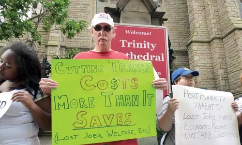 Riders and the community want Port Authority to hear those stories. Bus riders, students, unions, environmental and religious groups, and other activists rallied outside the transit agency’s Downtown offices on Sept. 24 — the day the board had planned to vote on the cuts, fare increases and approximately 500 layoffs. Words scrawled in chalk on the sidewalk carried a simple message: “No fare hikes. No job cuts. No route cuts.”