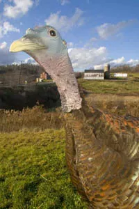 Turkeys suffer from a number of diseases, just as we do, mainly one in which protozoa attack the bowel and liver, called blackhead. (We humans have Stridex for that). The name’s misleading, in that the turkeys’ heads don’t turn black; rather, the visible symptoms are drooping heads and yellowish discharge.