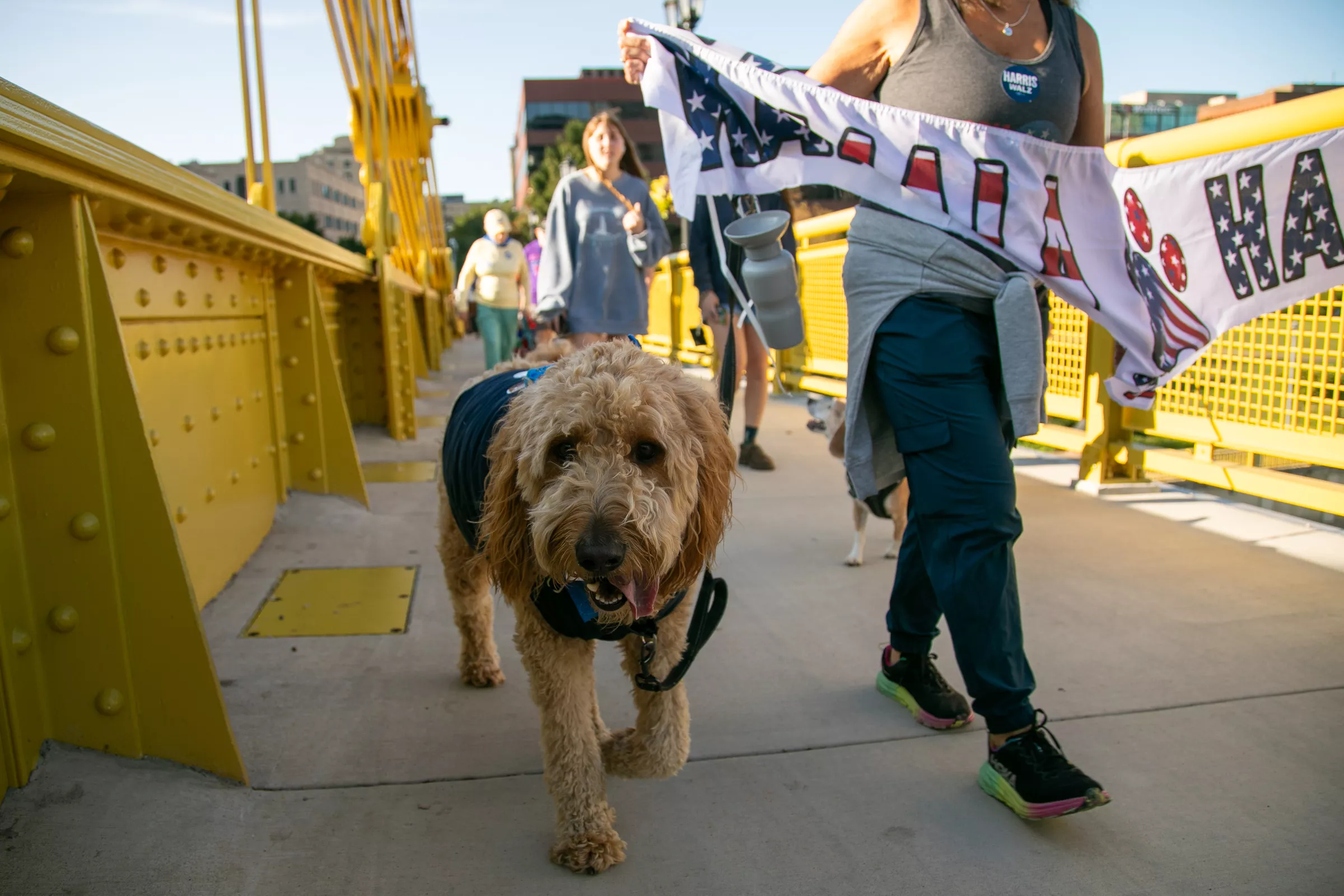 The “Dogs for Democracy” event on Sunday, September 8th in Pittsburgh, PA, was a dog parade and walk across the Roberto Clemente Bridge and through town to the Omni William Penn Hotel where Vice President Kamala Harris was temporarily residing.