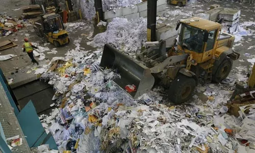 Paperwork: Recycle Management moves the pile at its Neville Island facility. Credit: Heather Mull