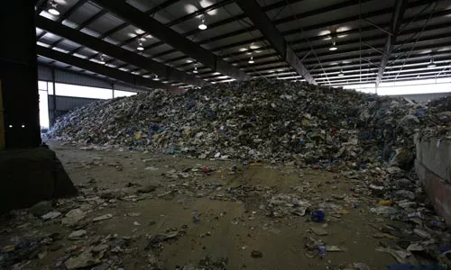 Neville Island itself greets you with a sulfur smell: The island’s upstream end is lined with the gates of the Shenango coke works, Cemex, Neville Chemical and Calgon Carbon Corp. Recycle Management (owned by Houston-based recycling giant Greenstar) sits on 16 acres, the former site of a detinning plant, with a warehouse-like new processing building set to open June 1. The plant employs about 80. Workers go around the clock five days a week, taking in about 10,000 tons a month from municipalities, businesses, hospitals and colleges.