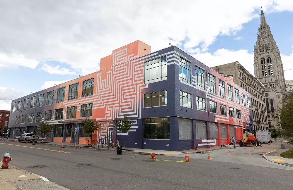 Yesterday, Duolingo officially unveiled To Be Human, a new mural gracing its East Liberty offices. The work was executed by Detroit-based artist Ann Lewis, who, over the course of a residency, created it with students at the Barack Obama Academy of International Studies in East Liberty. A press release reads that the “mural’s colors and message are inspired by the student body’s ethos, creative collage making, and discussions centered on their perspective of community.”
