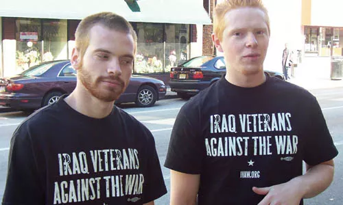 Hartbarger, 22, is a member of Iraq Veterans Against the War. He entered the Army in July 2002, after meeting a recruiter in high school. Why did he join? “Money for college. Get out of the house,” he said. “It all happened pretty quickly.”