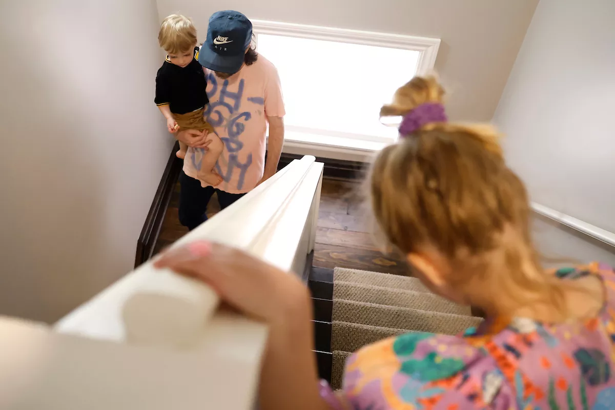 As if on cue, while Gillis toys with more samples, pairs of little feet begin clomping up the stairs. “We heard music, Daddy!” Remy says as she jumps into his lap. Cam has just woken up from his nap, and is sporting a Mickey Mouse shirt with a diaper. Bieselt brings up the rear, ensuring no one falls down the stairs.