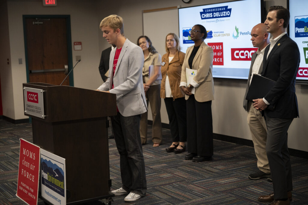 Congressman Chris Deluzio joined energy advocates, educators and local leaders for a clean energy tour on CCAC’s North Campus on Wednesday. Speakers from PennEnvironment, PennFuture, PA Solar Center, Moms Clean Air Force and Conservation Voters of PA highlighted the benefits of clean energy through the use of solar panels and electric vehicles. CCAC President Dr. Quintin Bullock outlined the school’s commitment to clean energy stating, “As CCAC’s largest completed solar energy initiative to date, this project continues to be a win for the college and the environment.” Dr. Bullock explained that the rooftop solar panels are capable of powering one third of the campus’s electric requirements and save the school an estimated $59,000 to $73,000 per year.