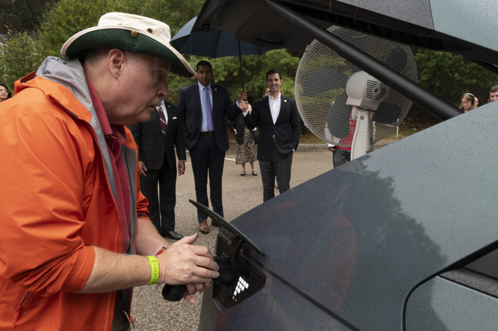 Tim Kelly powers a fan with his electrical vehicle on CCAC’s North Campus on Sept. 24, 2025. Credit: Mars Johnson