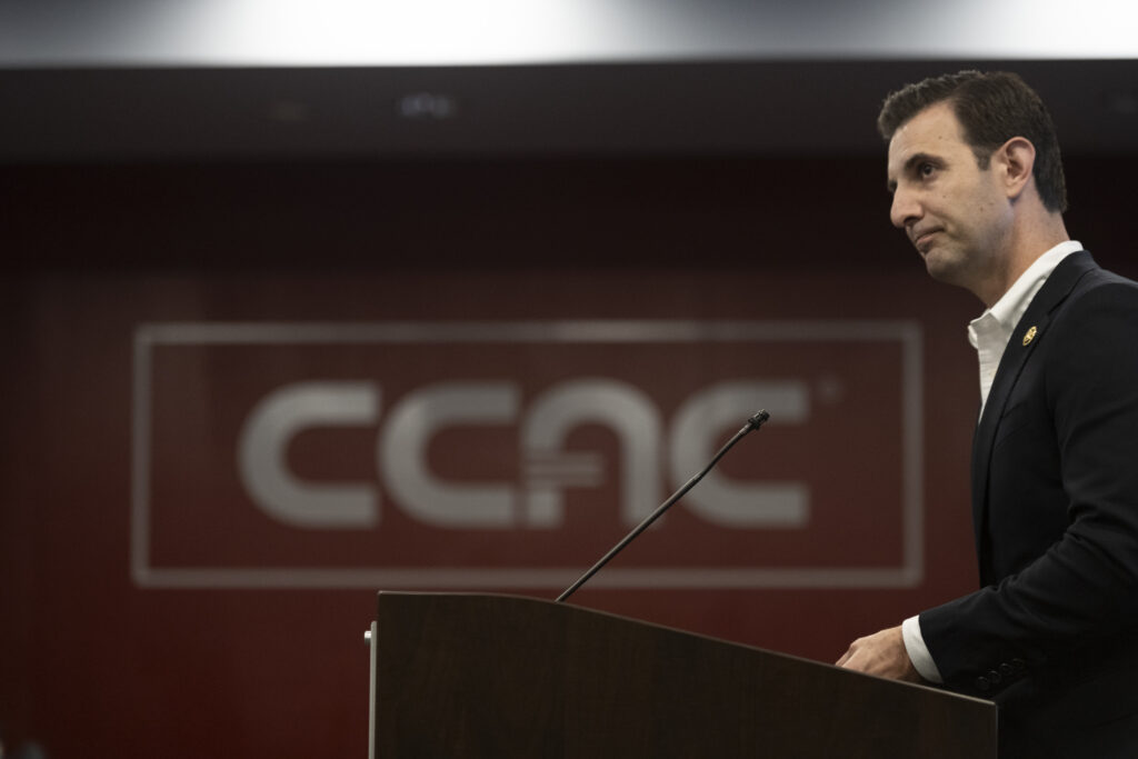 Congressman Chris Deluzio speaks during a tour of CCAC’s clean energy resources on Sept. 24, 2025. Credit: Mars Johnson