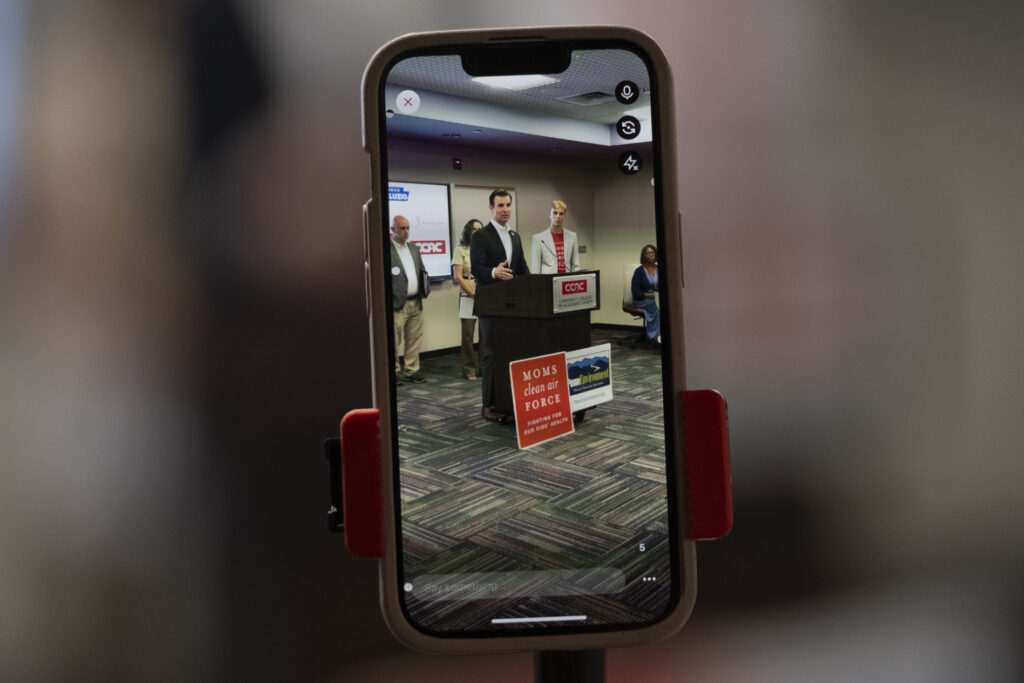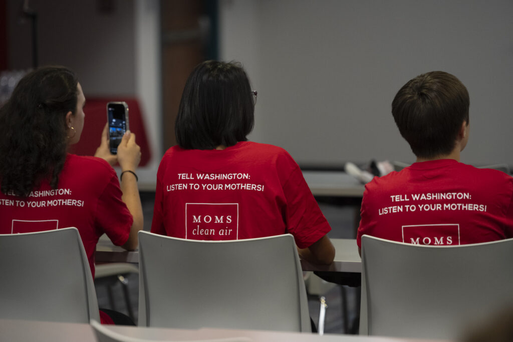 Gavin Lynch, volunteer with Moms Clean Air Force speaks to local leaders and community members on Sept. 24, 2025. Credit: Mars Johnson