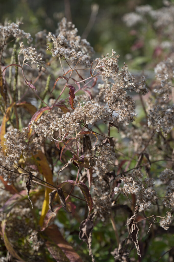In early fall, our increasingly sleepy woodland scenes are punctuated by clusters of fluffy, white flowers. At first glance, all these plants appear to be botanical besties, presumably sharing a species name. They proudly display their teeny, tubular blossoms, forming flat floral umbrellas atop long, leggy stems — luring all the autumn pollinators to the yard.