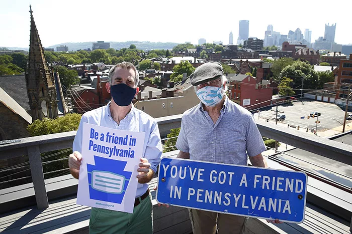 And now, Larkin has launched a self-funded poster campaign using a twist on his pop’s original slogan, hoping to, once again, pull at heartstrings and get Pennsylvanians to stay safe and “be a friend” by wearing a mask during the pandemic.