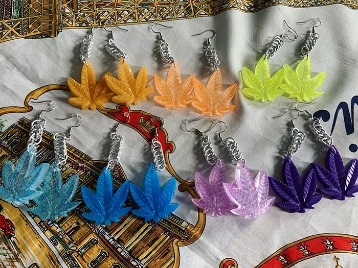 Local jeweler and artist Maggie Cirillo of Chronic Chain makes a line of earrings — many of which integrate her signature chainmail — featuring lightweight resin weed leaves in a variety of bright colors and styles. Customers can choose from single-leaf weed danglers or three-leaf drop earrings. Complement them with one of Cirillo’s heart-shaped ashtrays that pop with suspended rainbow sprinkles, dried flowers, glitter, and other materials. chronicchain.bigcartel.com