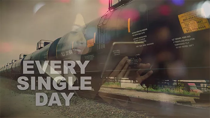 The commercial implies that oil and natural gas lines are necessary to keep tanker trucks off of roads and tanker train cars off of railways, “just to meet our energy needs.” The commercial posits underground pipelines as bucolic havens, and railroads and highways as dangerous.