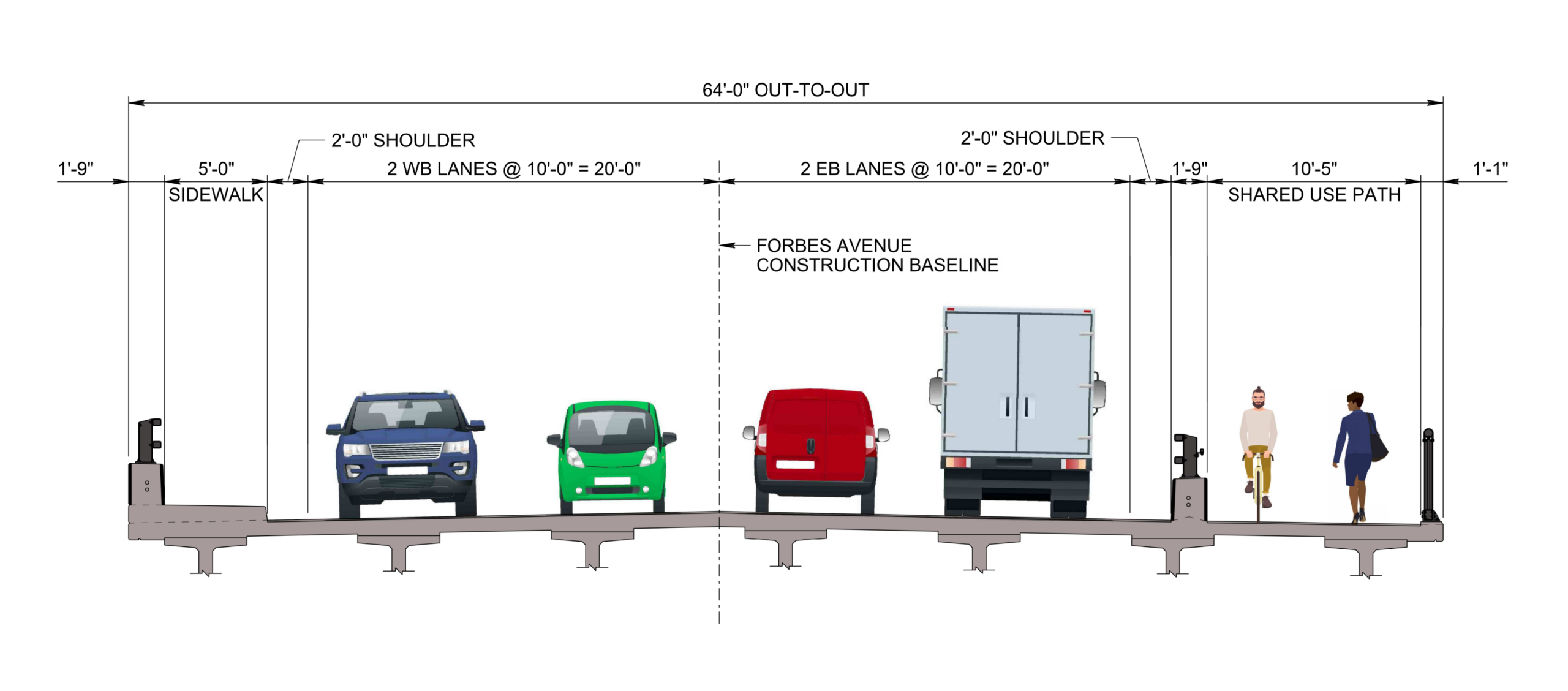 To that end, Wilkinsburg resident and public transit advocate Laura Wiens identifies several other concerns pertaining to building a better bridge, posting on the Park Place Neighborhood Facebook page that the previous bridge “had congestion during rush hour on the outbound side, that cyclists were funneled into traffic, that the sidewalks were too narrow to accommodate a person with a stroller or wheelchair, that crossing the street by the bridge was like playing Frogger, that people drive really fast on Forbes, both ways, but particularly on the inbound side— and to suggest that those design flaws be remedied by the new bridge, not be exacerbated by the new implementation.”