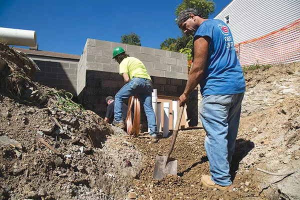 The original project cost was about $100,000. Major factors increasing the price tag included the high cost of site preparation, says Picker. She says CityLAB excavated the lot to remove the remnants of a collapsed home and dug a 12-foot-deep trench to separate the sewage line from the property’s stormwater runoff, to comply with the federal Clean Water Act. Because the project is the first of its kind, costs associated with the zoning variances were also higher than expected. Such additional expenditures totaled about $50,000, says Picker. She later learned that such costs are not uncommon among projects on deeply distressed lots.