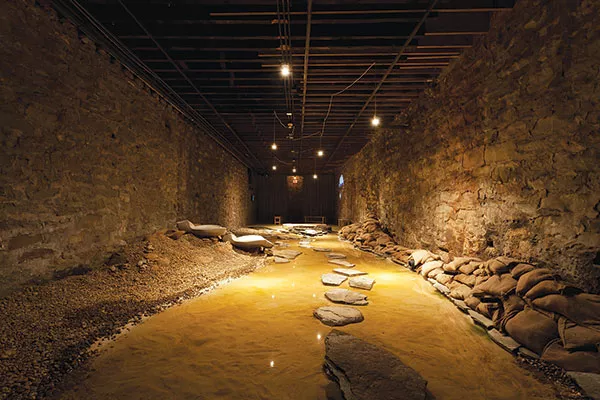 Betsy Damon was active in the Women’s Movement in the 1970s. Her “Water Rules — Life, Pittsburgh: Seeking Lost Rivers, Living Waters of Larimer” fills an entire room in the basement. It could be interpreted as Zen garden, rivulet, tide-pool or flood. In 1991, Damon founded Keepers of the Waters, an organization that focuses on water stewardship. For this project, Damon researched Pittsburgh’s topography, its rivers, its water systems and its wastewater treatment. Her project includes Living Larimer, a model for gathering rainwater that will help prevent devastating floods in an economically struggling urban area.