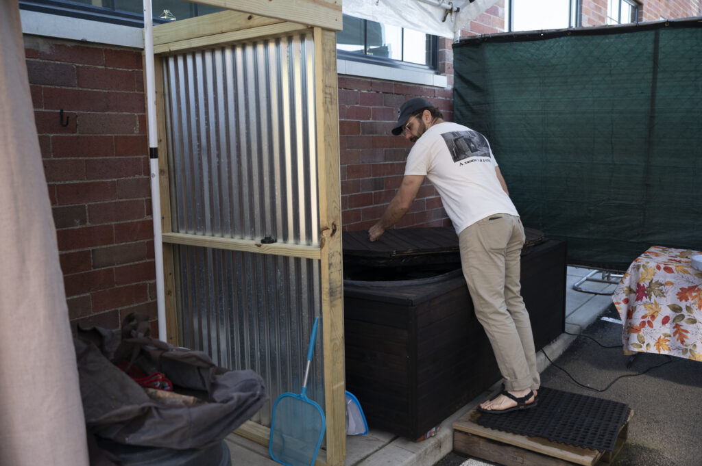 “I try to think of community as a practice, not like a discrete entity. It’s something we do,” he says. Four nights a week, this sauna community is rolling languidly along. Anybody is welcome to join. He just suggests you bring a robe.