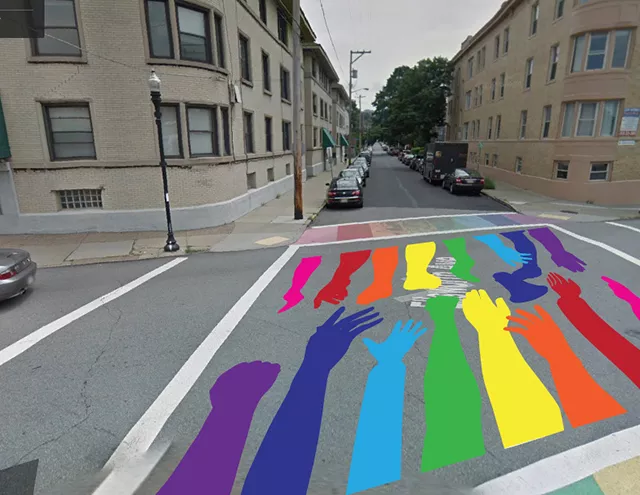 On June 28, the 50th anniversary of the Stonewall Riots, an unveiling event will be held at the intersection of Ellsworth and Maryland. Parsakian says it will include a DJ and a drag queen performance. The public art will also be covered with one of the flags that used to hang over the intersection during the early Pittsburgh Pride marches.