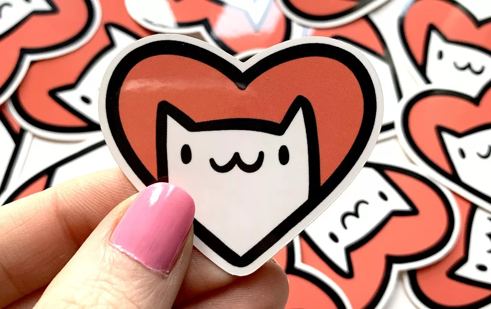 “Oh, cats. Cats are my favorite things to draw. They’re just so goofy, and even just a simple cat can look so funny,” says McGaughey. “That’s why my logo is a cat, and I have a lot of cat-themed products.
