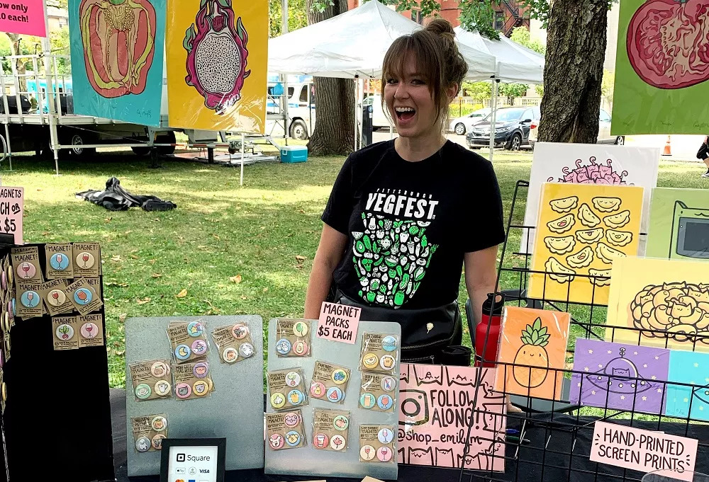 The Titusville, Pa. native now resides in Pittsburgh and produces magnets, pins, posters, stickers, and other small items. All of her art is made in her home, where she draws on an iPad then prints the designs.