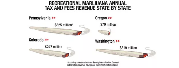 Because of Pennsylvania’s relatively large population, the auditor general’s office estimates the state could eventually bring in about $325 million in tax revenue yearly, if recreational marijuana is legalized, regulated and taxed.