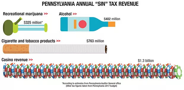 Below CP offers figures to show how a Pennsylvania recreational-marijuana tax could stack up compared to other states and other Pennsylvania “sin” taxes.