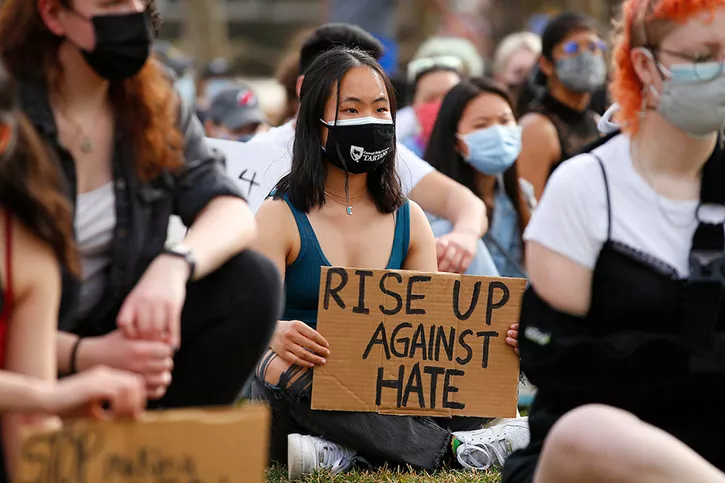 More than 400 people gathered on Flagstaff Hill in Pittsburgh’s Oakland neighborhood on Wed., March 24 for a rally in response to the recent Atlanta mass shooting, as well as the general rise in anti-Asian hate crimes in the past year.