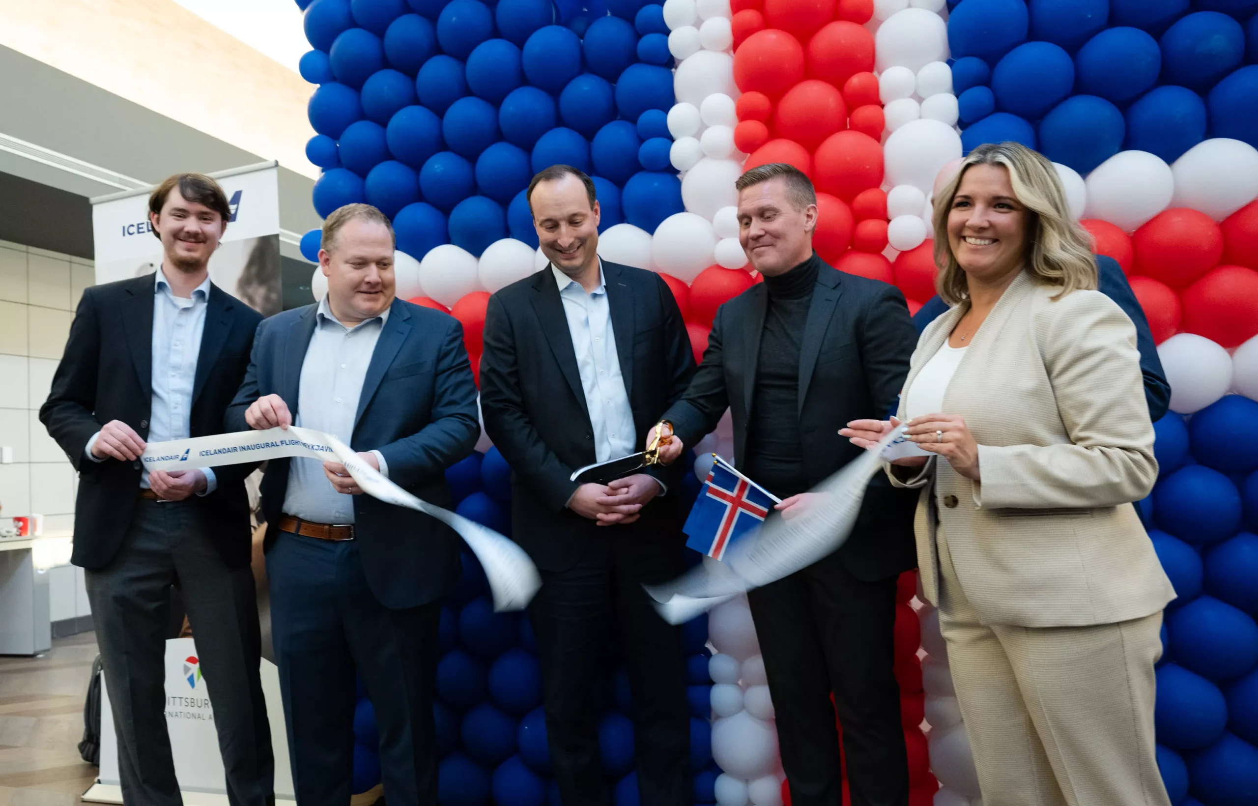 Icelandair and PIT representatives celebrate the inauguration of Icelandair’s direct flights from Pittsburgh. Credit: Photo: Courtesy of Pittsburgh International Airport