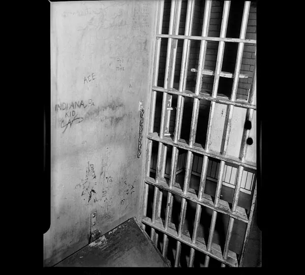 In the Carnegie Museum of Art’s ongoing exhibit Teenie Harris, Photographer, the image below appears briefly — a graffiti-marred jail cell wedged between photos of black-owned storefronts in a continual slideshow projection. But as with much of the legendary Pittsburgh Courier photographer’s work, the photo is framed by the stories of Pittsburgh’s Hill District. A place with big-city problems like racism and crime, but small enough for a police officer to be on friendly terms with the man who would one day kill him. And as the stories written around that photo and dug from microfilm files suggest, different communities and their media saw life through different lenses — in 1954 just as today.