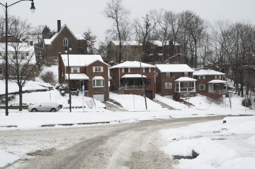 Heavy snowfall piles up in Squirrel Hill on Dec. 15, 2025. Credit: Mars Johnson