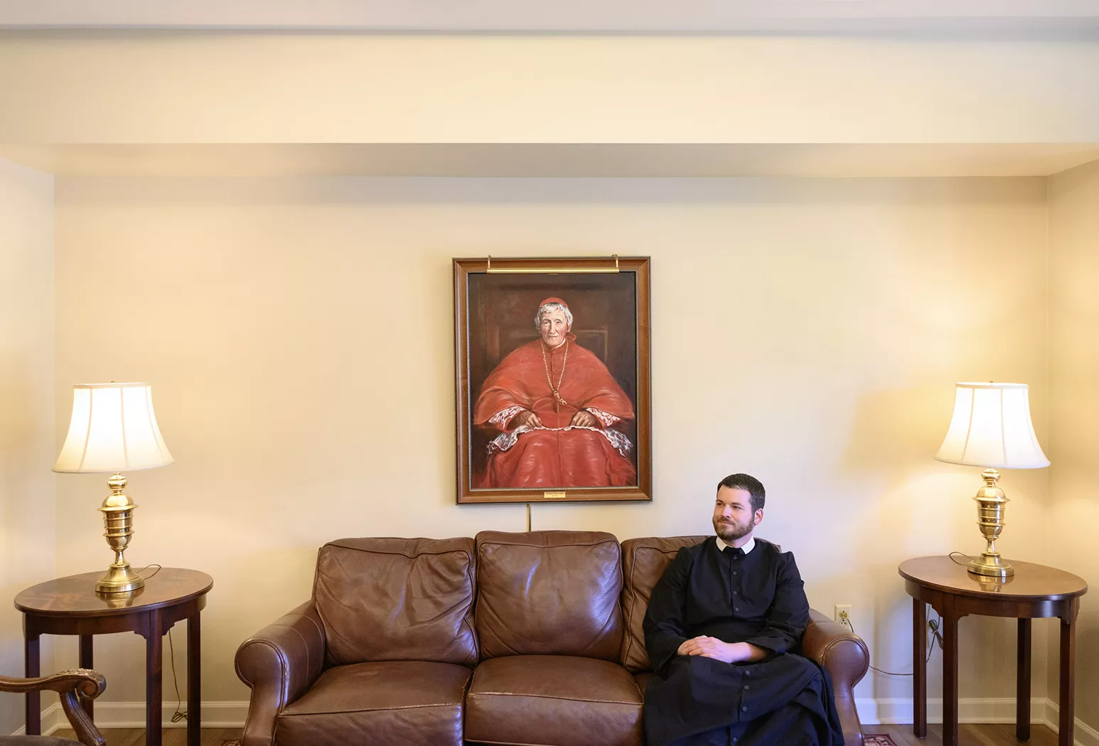Father Peter Gruber, Director of Campus Ministry at The Pittsburgh Oratory, poses for a portrait inside the Catholic Newman Center. Credit: CP PHOTO: Mars Johnson