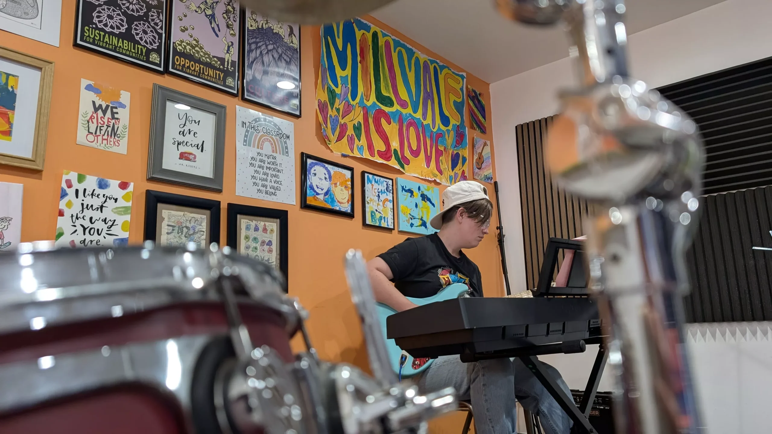 “It provides a space where every child can get what they need out of music,” they say. “For some, maybe it’s trying to get into music college or preparing for professional musicianship. For some, it’s a safe space to take a nap while they listen to their friends make music, and they can have a snack from our little community fridge.”