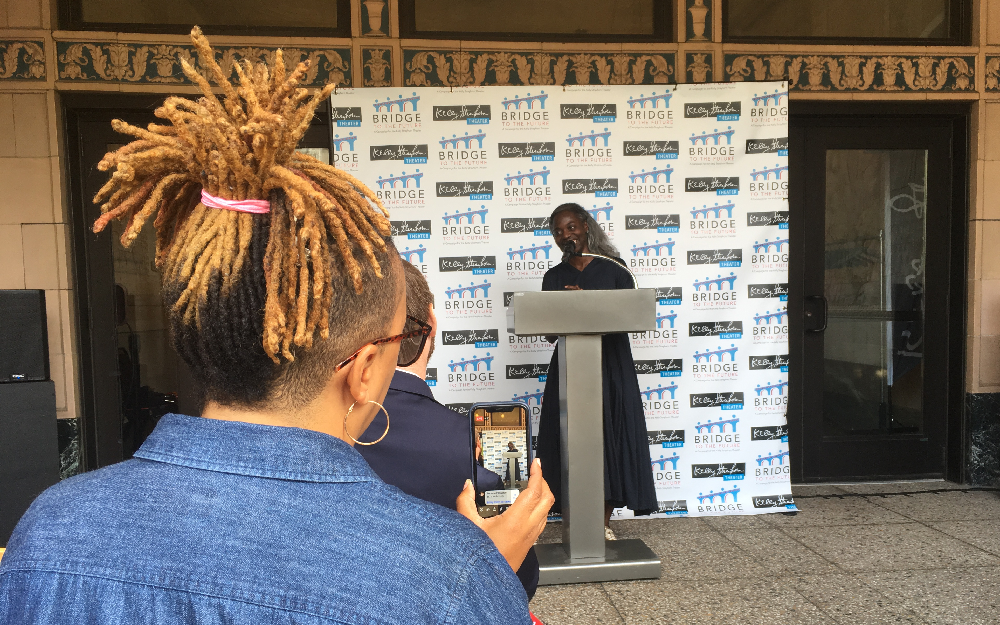 At a small gathering outside of the Kelly Strayhorn Theater in East Liberty this morning, a handful of local community leaders met to help kick off the Bridge to the Future, a campaign to secure the theater’s future.