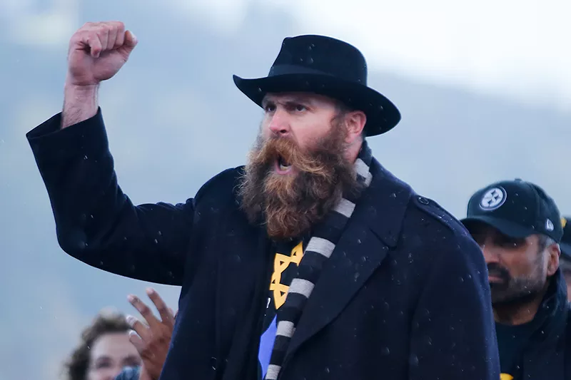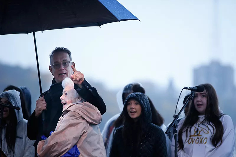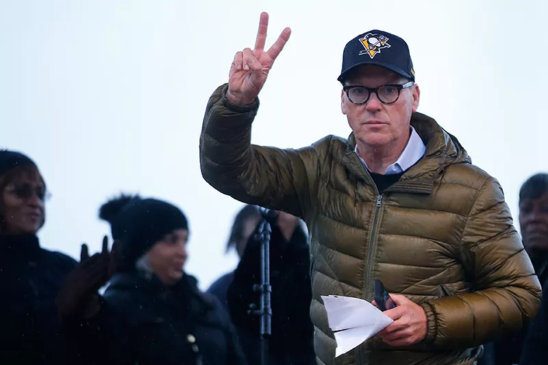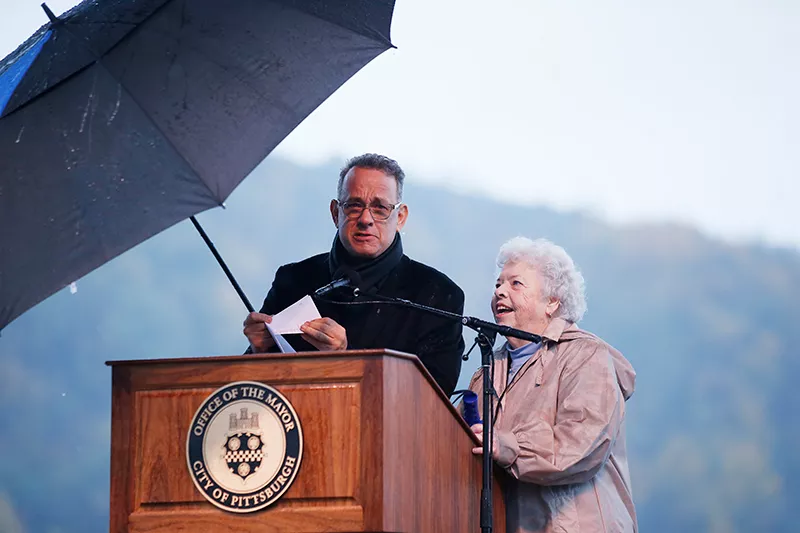 But the hundreds of Pittsburghers had reason to celebrate today. They were joined by local leaders like Mayor Bill Peduto and several celebrities, like Tom Hanks and McKees Rocks native Michael Keaton. Former Pittsburgh Steelers player Brett Keisel and actress Tamara Tunie also rallied with the group. Everyone was joined by Mrs. Joanne Rogers, the wife of the late Pittsburgh icon, Fred Rogers.