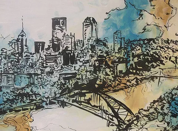 Revival, a new show by Matt Hunter at 3G Gallery, showcases 34 new works by the painter, who lives in the West End and regularly has shows throughout Pittsburgh’s East End. Hunter, a native Pittsburgher, studied at the Pratt Institute in New York before returning here 10 years ago.