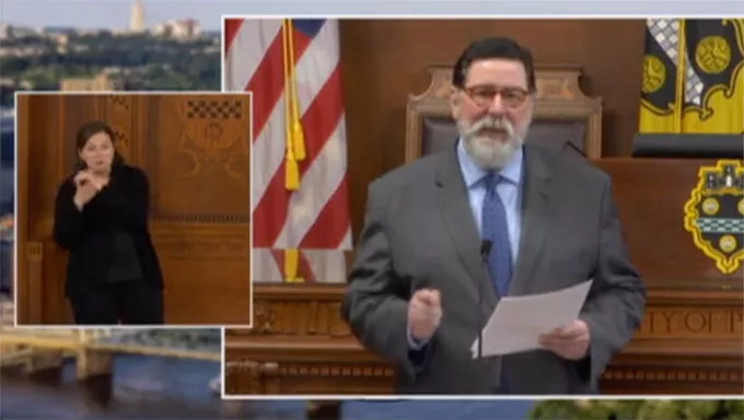 Peduto proposed changes for the city post-pandemic including treating internet as a utility as vital as electricity or water, clean energy, more infrastructure jobs, and addressing the underlying disparities between communities in Pittsburgh, most notably between Black and white Pittsburghers.