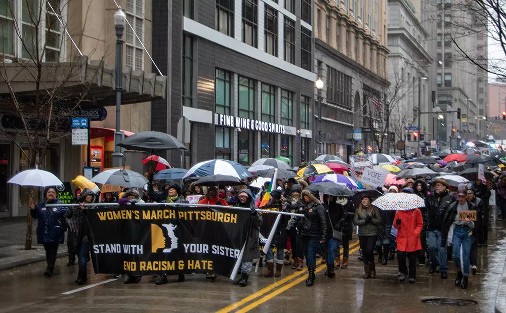 Not even freezing rain could keep Pittsburghers indoors on Saturday morning. A crowd of more than 200 people began to gather in the portico of the City-County Building on Sat., Jan. 18 at around 10:30 a.m., awaiting the start of the fourth annual Pittsburgh Women’s March.
