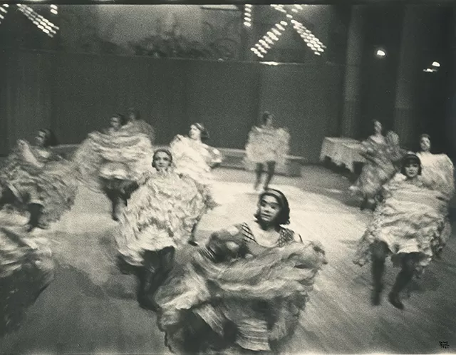 The era of the exhibit could best be summed up in work of Ilse Bing, whose life and photography embodied both the liveliness and transience of the period. German-born Bing was known as “Queen of the Leica” for her extensive use of the camera, which even appears in self-portraits. She captured dreamlike images of Cancan dancers and a fortune-telling booth as well as more pedestrian scenes like a street puddle or kids by a river. Her work was published and commissioned by famous magazines, but Bing was Jewish, and in 1940 she spent six weeks in a camp before making her way to the United States. A friend shipped her photo prints, but Bing couldn’t afford all the customs fees and had to choose which of her collection to keep. Many of her original works were lost.