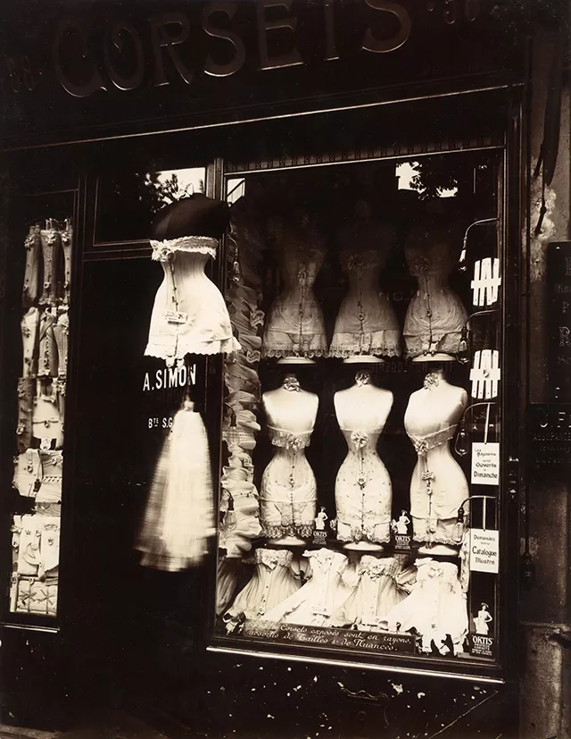 Atget, one of the early pioneers of documentary photography, captured fleeting architecture and street life, permanently documenting impermanent fixtures of the city, like an erotic sculpture hidden under a church pew or rows of eerie corsets hanging on mannequins in a shop window. Along with his peers, Atget captured a different kind of surrealism than what we might recognize today.