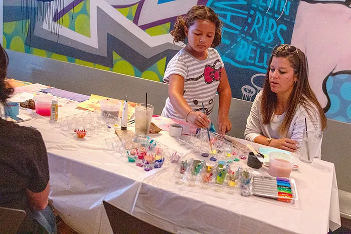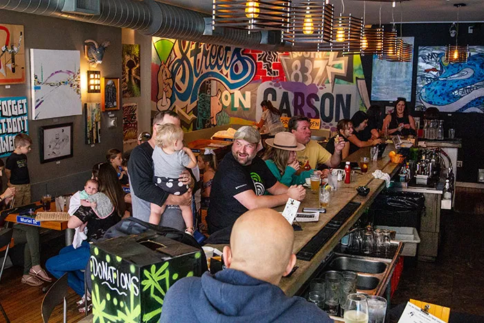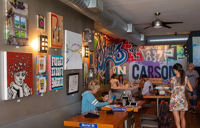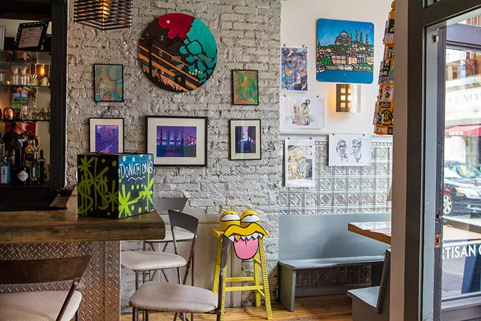 Half of all art sales and drink specials were donated. The benefit show, curated by Jeremy Murray, Nicole Betters, and Richard Koskas III, included a lot of street art-inspired paintings, which fit in perfectly with the vibrant decor of the South Side restaurant. The family-friendly event also included hands-on children’s activities.