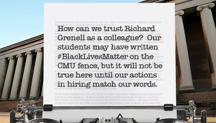 The open letter from faculty asks CMU to respond to concerns raised by staff and students, to provide transparency into the “financial, procedural, and ethical deliberations” that led to Grenell’s hiring, and to establish policies and oversight to avoid a conflict like this in the future.
