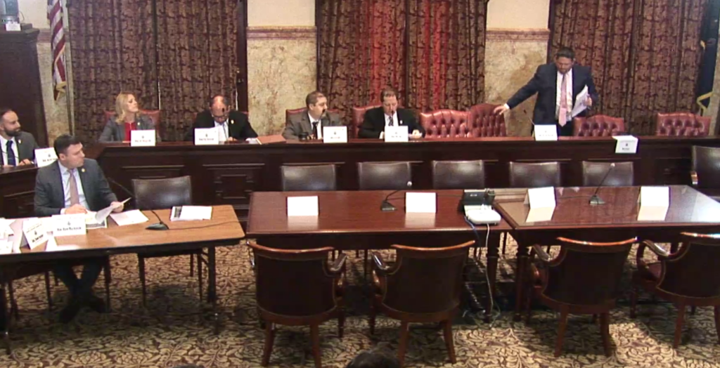 “This committee should be talking about ways to strengthen our workforce and getting people back to work,” Rep. Gerald Mullery (D-Luzerne) said in brief remarks at the start of the hearing by the House Labor and Industry Committee, before leaving the committee room.