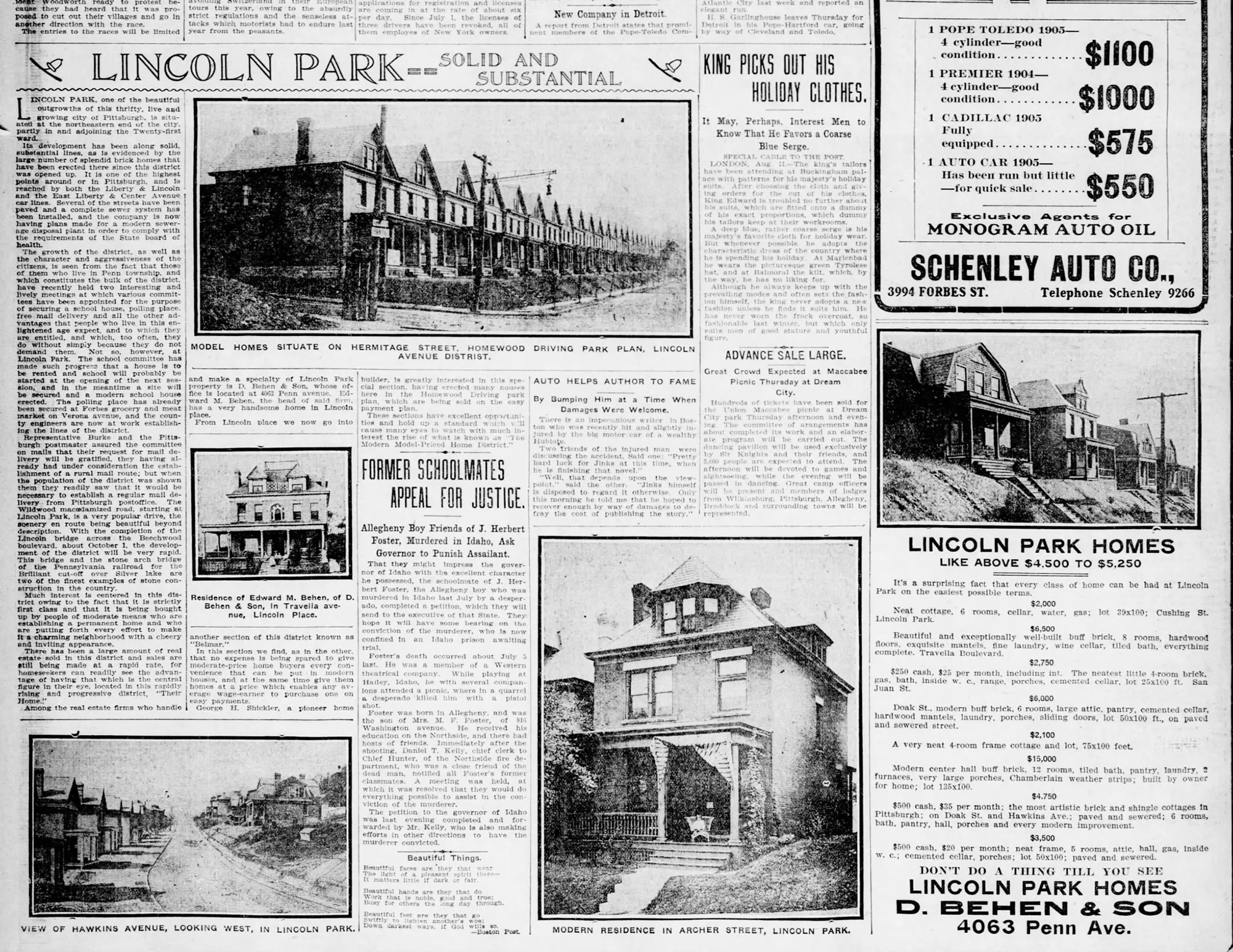 1906 advertisement from The Pittsburgh Post for Lincoln Park real estate