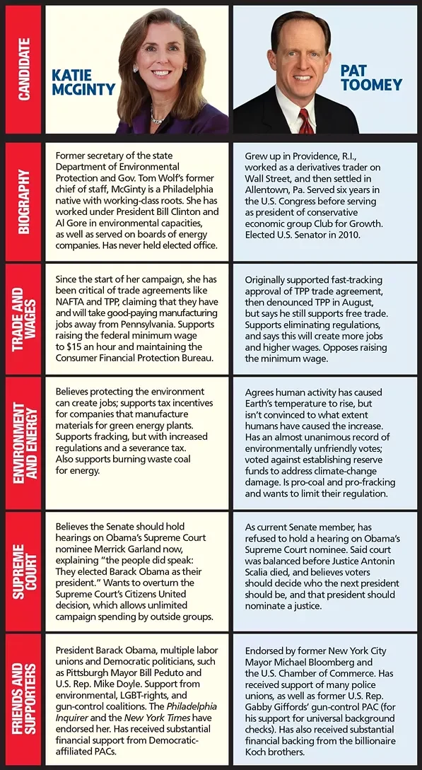 Both candidates are millionaires, but took different paths: Toomey, a Republican, as a Wall Street financier and McGinty, a Democrat, as a board member of energy companies. Their race is the most expensive U.S. Senate race in the country and could decide which party controls the Senate. A flurry of ads has made it almost as omnipresent here as the presidential contest.