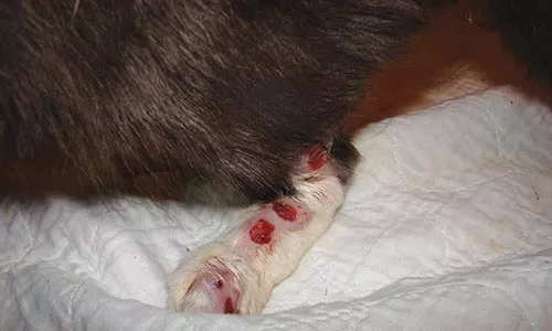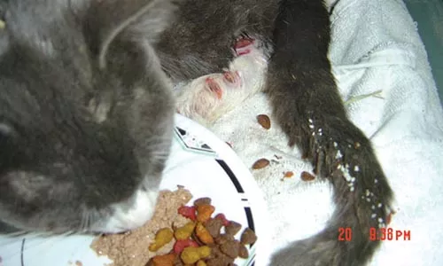 3 cats suffering from Skin Fragility Syndrome in which their skin was ripping off