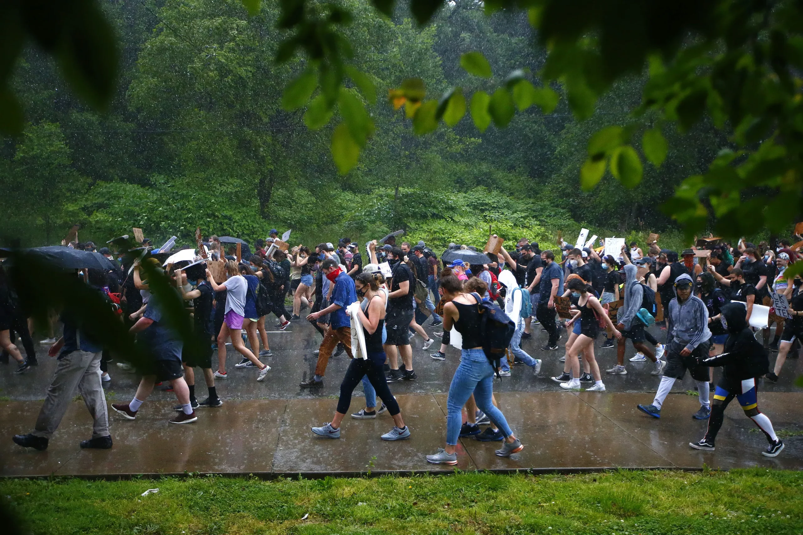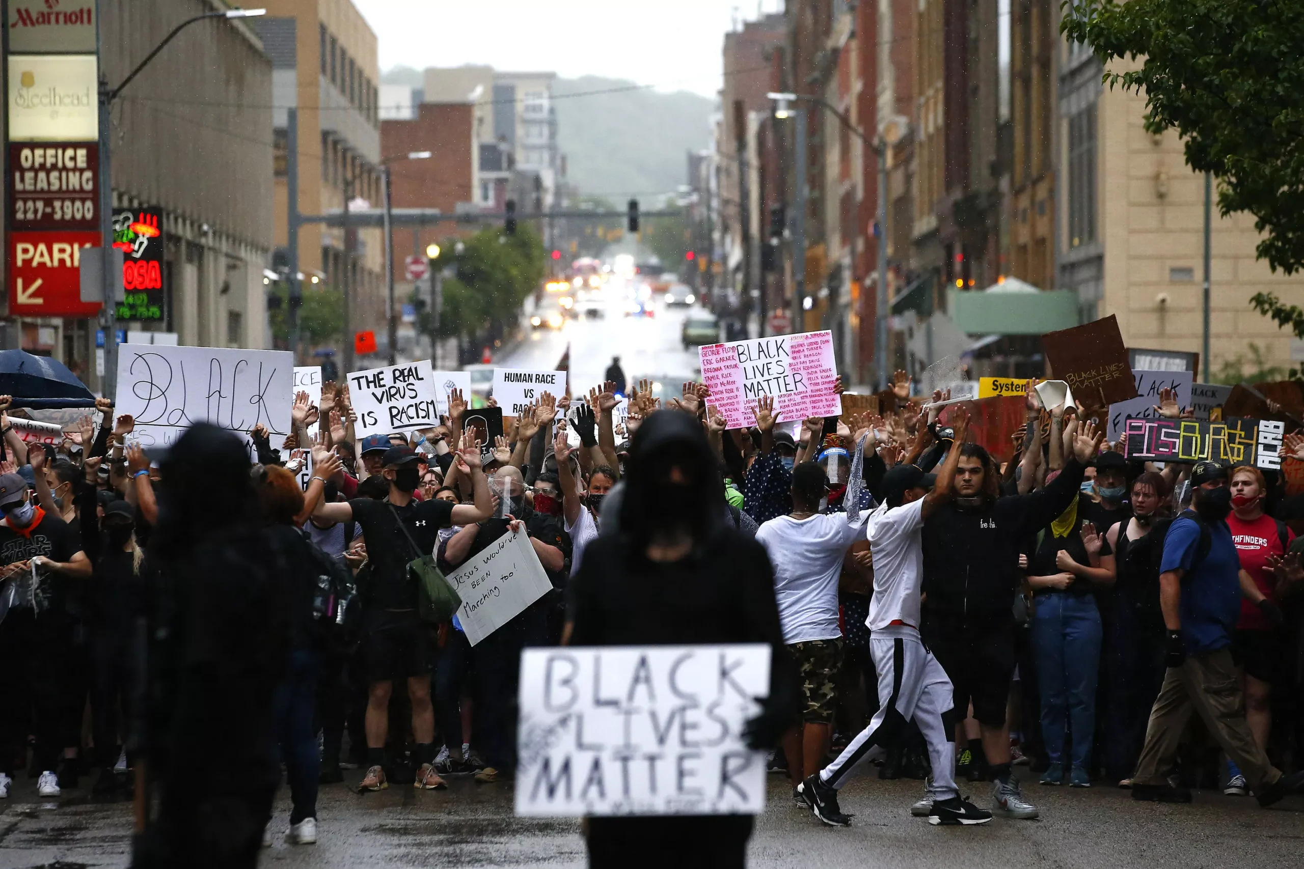 The last leg of the march took place along a rain-soaked Forbes Avenue through the Hill District where the protesters were met with a ton of support from residents and local businesses. Their message reached many neighborhoods and many miles of streets throughout the city, all with passion and peace.