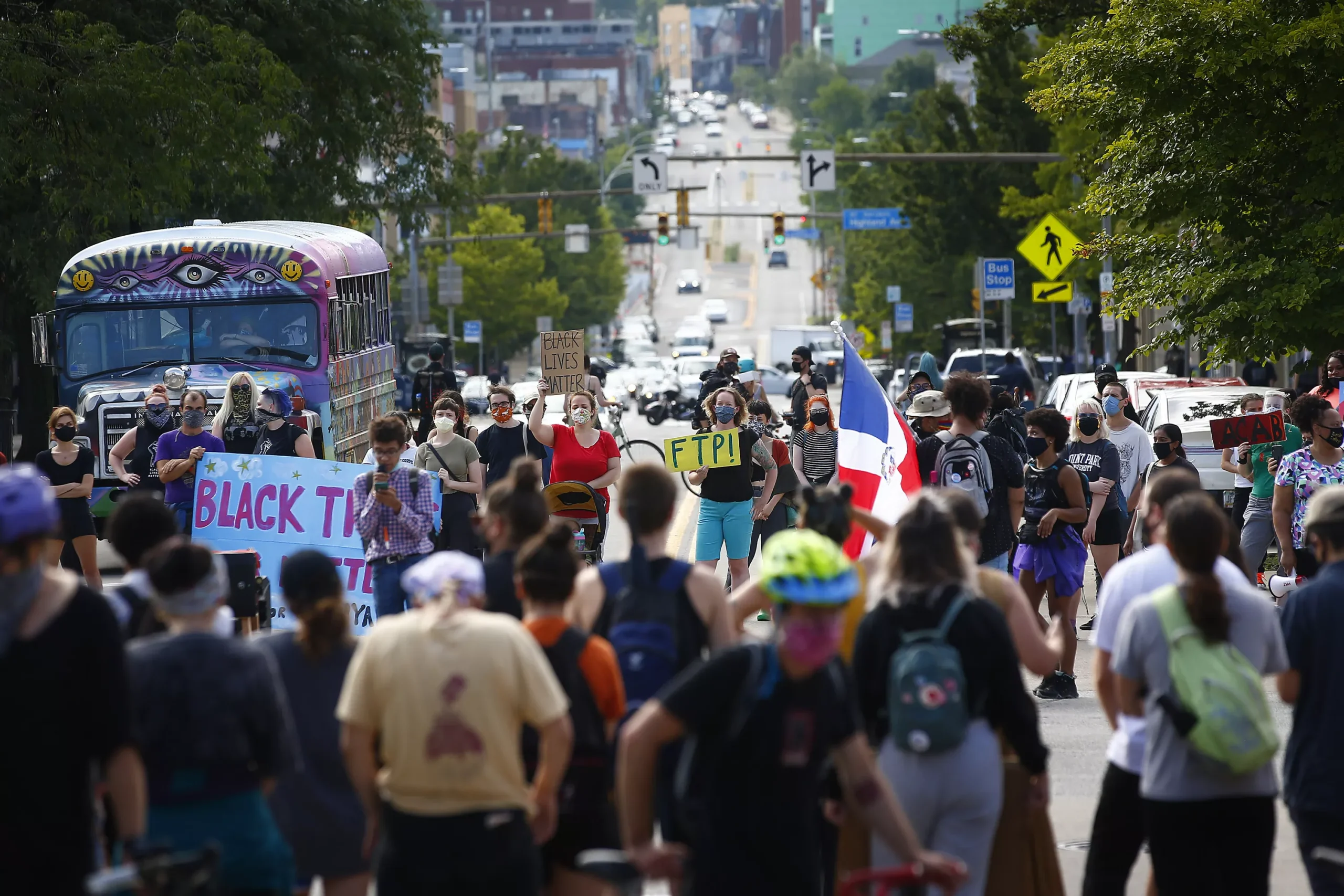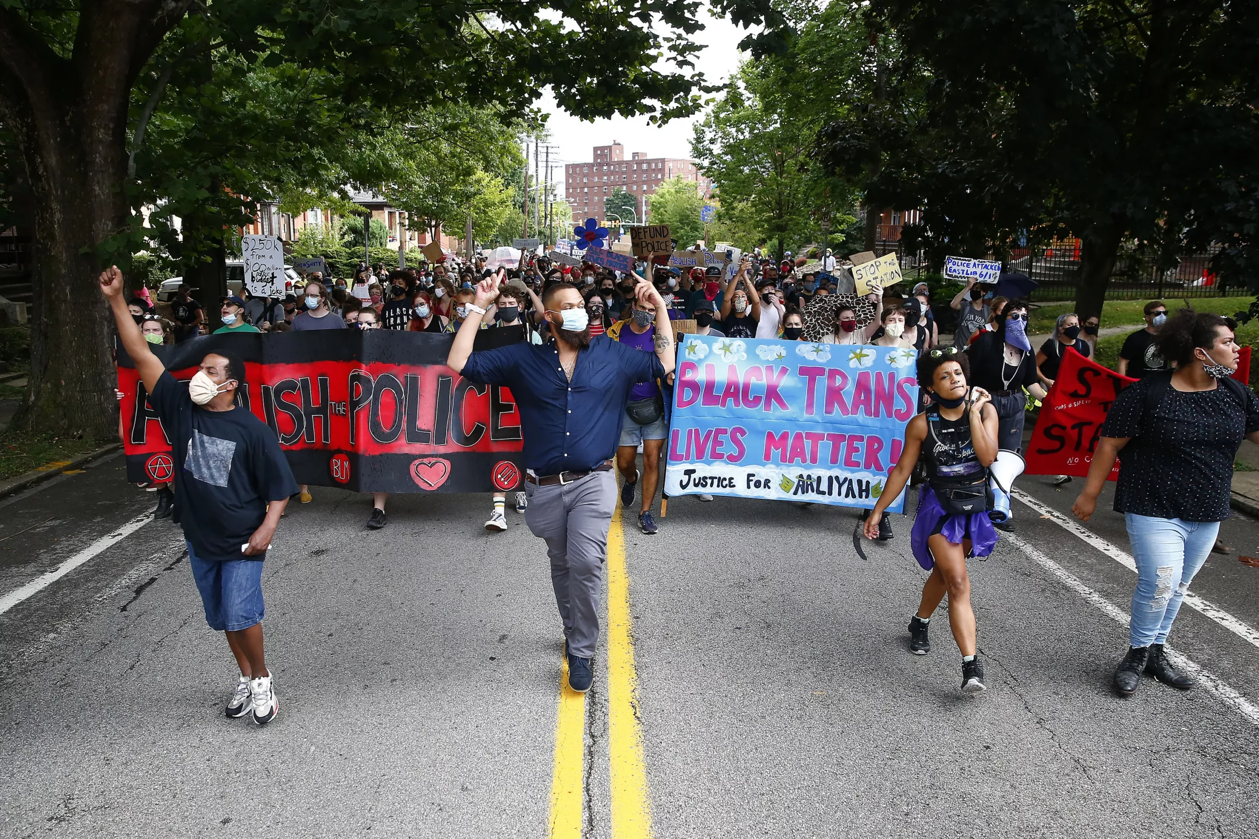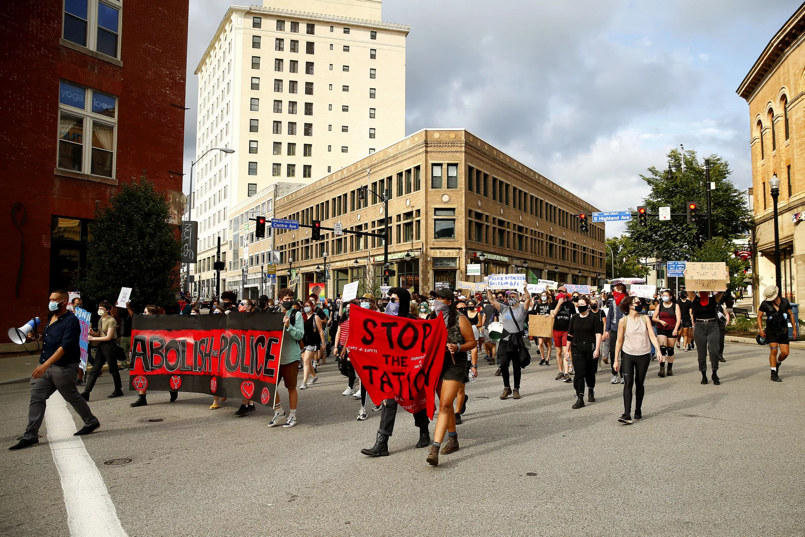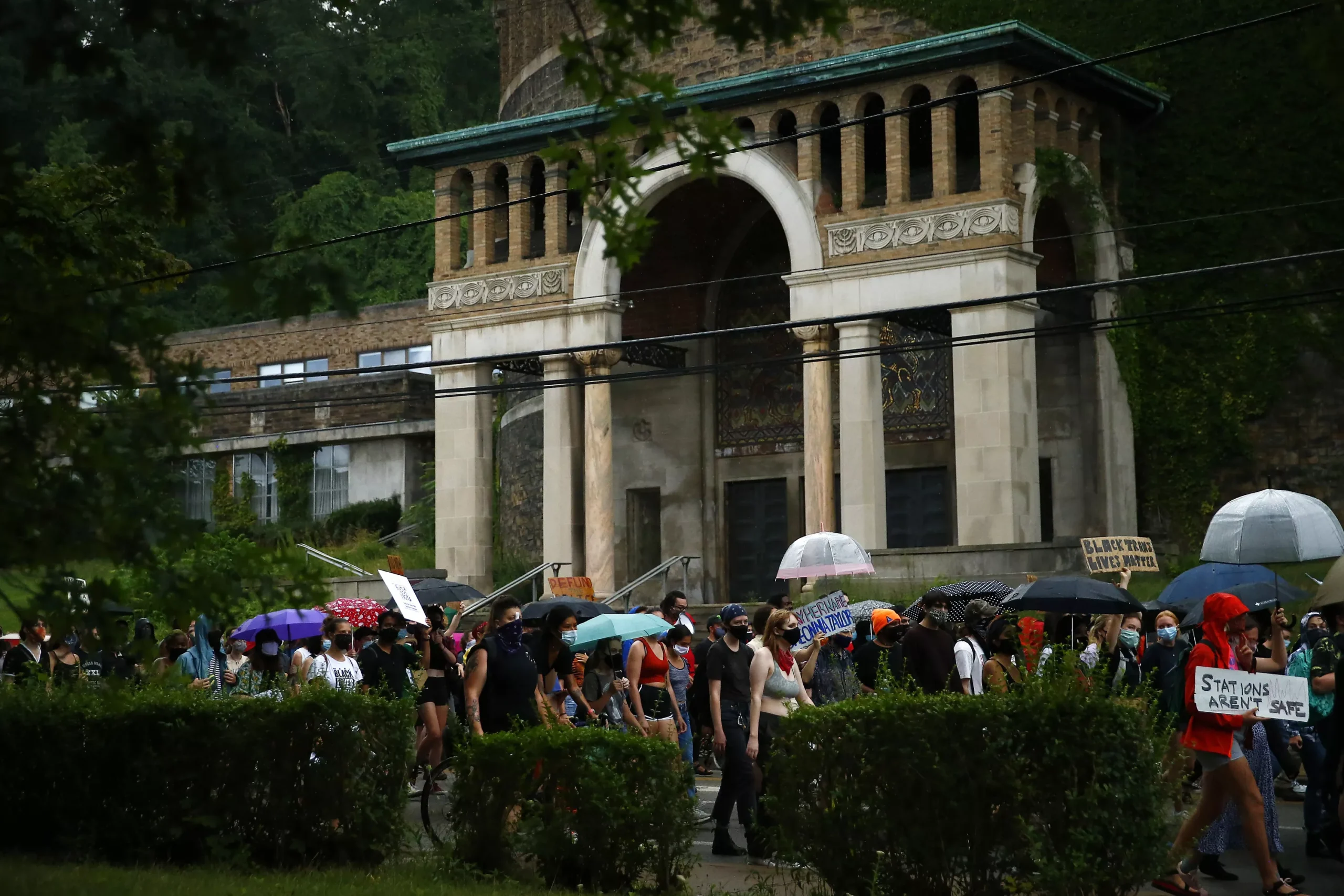 Through rain and shine, nearly 300 Pittsburghers took to the streets to continue protesting the future reopening of a police station in East Liberty.