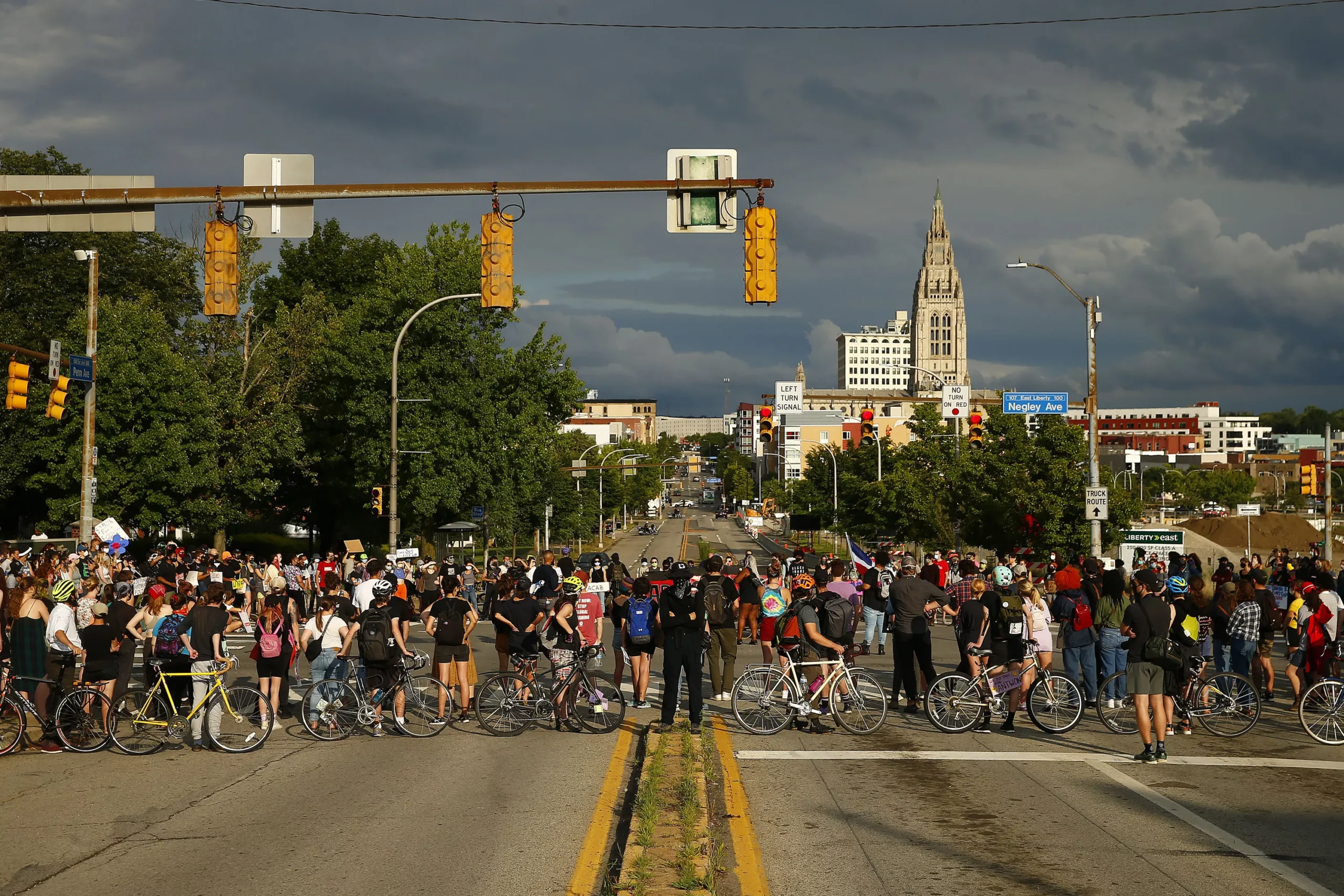 Starting at the fire station, the group marched to Target before continuing down Centre Avenue, turning on to Negley Avenue and circling up again at the intersection of Negley and Penn Avenues to listen to the personal experiences of those who lived in East Liberty, specifically Penn Plaza, and how the neighborhood has come to be as gentrified as it is today.