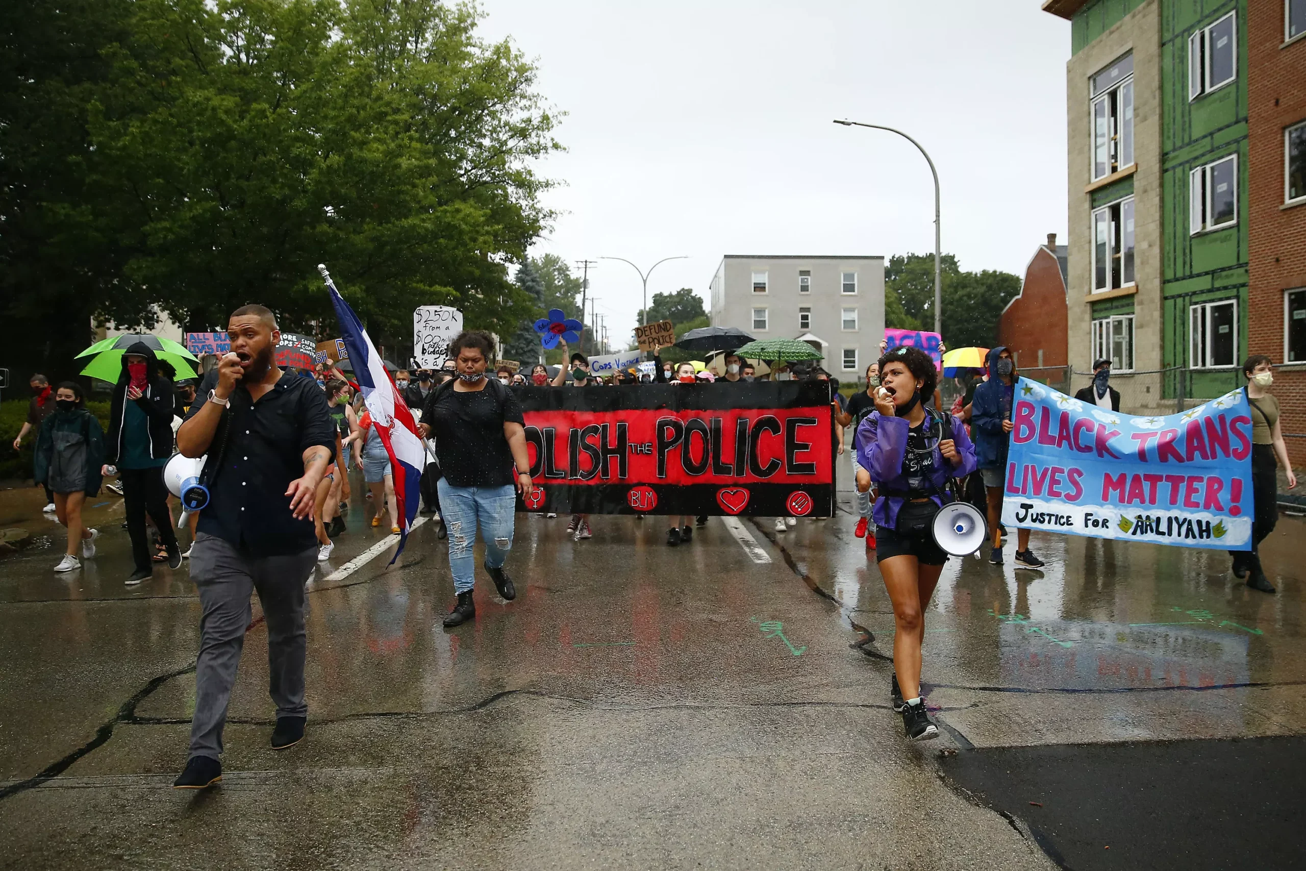 The protesters then marched through pouring rain back to their original meeting spot, but soon after most of the group had dispersed, one of their marshals was arrested by Pittsburgh police for supposedly fitting the description of someone accused of illegal activity in the past.