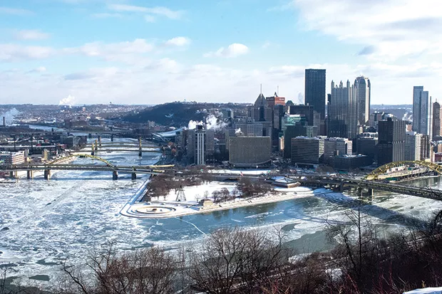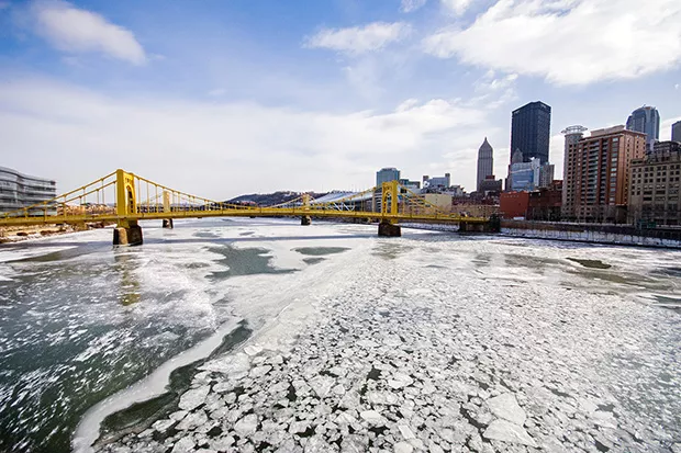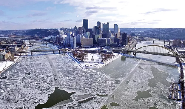 The recent frigid temperatures have frozen Pittsburgh’s mighty three rivers. The Allegheny, Monongahela and Ohio have accumulated inches of ice in many spots. This week has temperatures above the freezing point, but check out our recent Blogh to read why Lee Hendricks, of the Pittsburgh office of the National Weather Service, says that doesn’t mean all the ice will melt rapidly.
