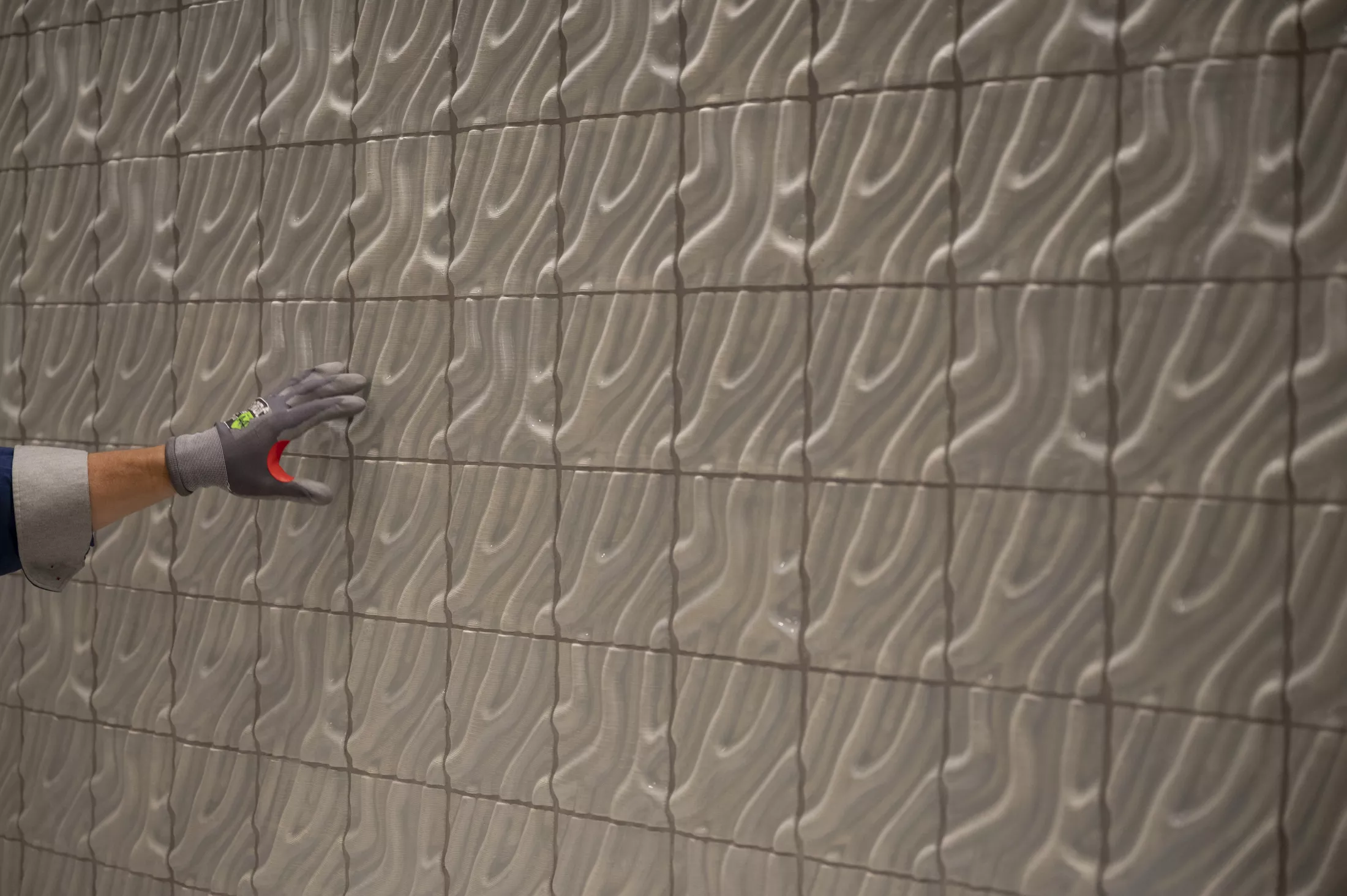 The new terminal’s bathrooms are much larger than the ones they’ll replace, and have been given a corresponding amount of attention. (Of note: there are gender-neutral restrooms and changing tables in both men’s and women’s facilities.) Inside, grooved tilework by artist Brian Peters, who builds his own 3D printers, recalls local topography. Extruded backsplash tilework by Limelight Tile & Ceramics will feature custom-crafted flower holders and coathooks.